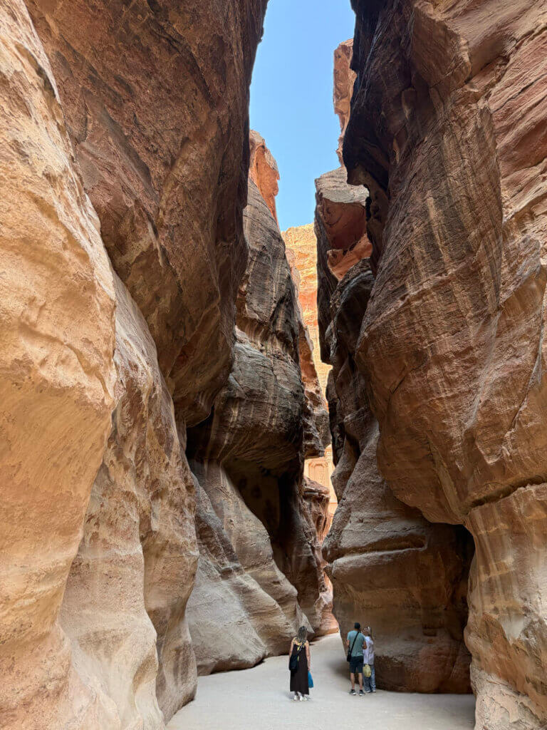 Wij hadden het ons voorgesteld als een nietszeggende route naar hét hoogtepunt, maar dit stuk bleek minstens zo mooi als de schatkamer zelf. We slingerden tussen rotsformaties door en uiteindelijk konden we de schatkamer in vol ornaat aanschouwen. Er waren relatief weinig bezoekers en de temperatuur was aangenaam. Een goede keuze om vroeg op pad te gaan.