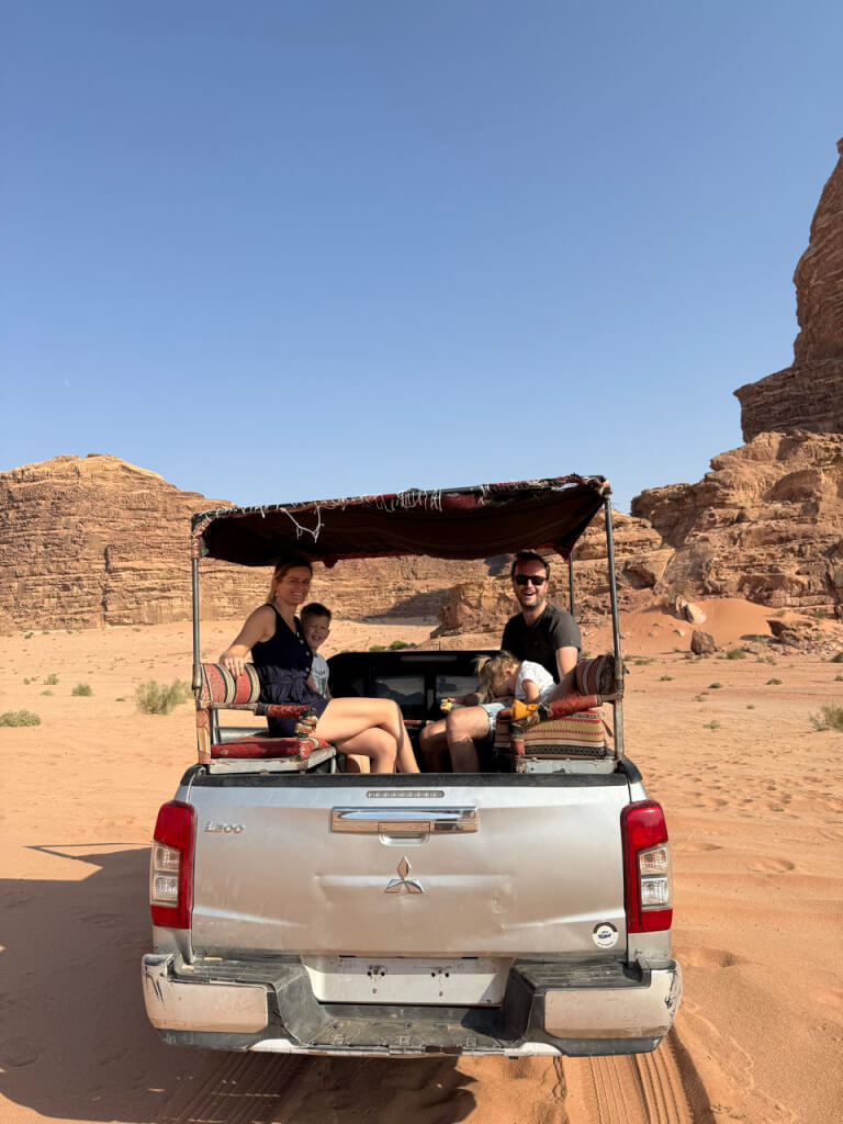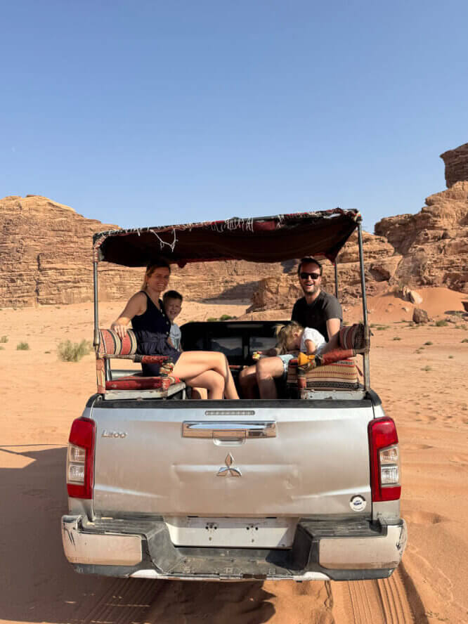 We trapten af met de bestemming Jordanië. De vijf uur durende vlucht ging goed en na heerlijk uit te slapen hadden we weer energie voor 10. Dat is maar goed ook want we hadden een drukke dag voor de boeg. Deze week hadden we een vaste chauffeur/gids die elke dag netjes het programma met ons en de kids afstemde.