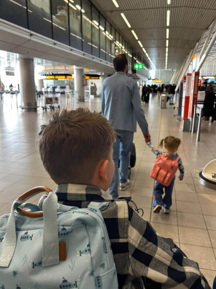 Eindelijk maak ik mijn droom waar… Een wereldreis maken! Samen met mijn vrouw Inèz en twee kinderen Jesse (4) en Noëlle (3) ga ik dit avontuur aan. Nadat we van iedereen afscheid hadden genomen, was het tijd om naar Schiphol te gaan. We waren er klaar voor en hadden er enorm veel zin in. De taxi werd door de kinderen met gejuich ontvangen: ‘we gaan eindelijk op wereldreis’! 😃
